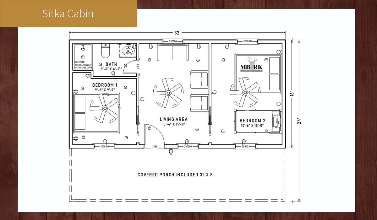 The Sitka Cabin is the ultimate solution for high capacity sleeping in an efficient, ranch ready cabin footprint. Designed as a sleeping cabin without a full kitchen, this unit is perfectly optimized for use as a dedicated hunting cabin base camp, a guest overflow lodge, or a bunkhouse for ranch hands.