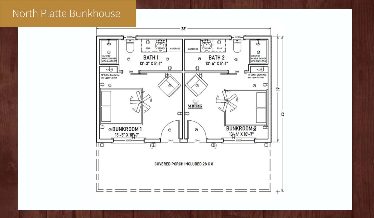 Compact Utility, Western Durability (17×28)The North Platte Bunkhouse is the ideal solution when you need high-quality, private sleeping quarters in a compact, durable footprint. This 17’x28′ ranch cabin delivers two fully independent bunkrooms, ensuring maximum comfort and privacy for guests or crew members.